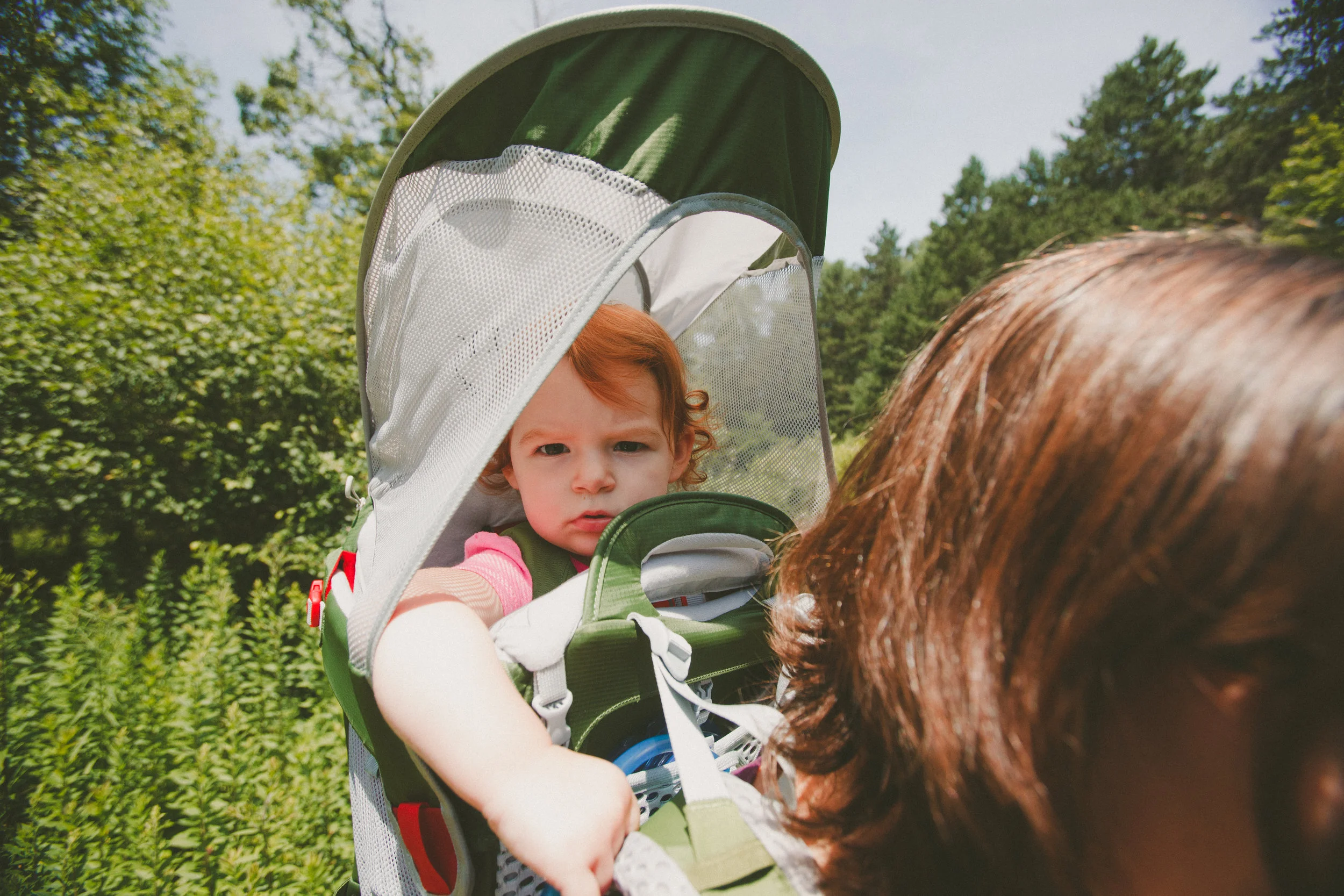 It’s late by the time we work our way to the trailhead, the coolness of the morning already gone. Kiddo’s fussing, already tired, her red curls matted under the heavy heat and humidity of the late morning. The meltdown is coming.