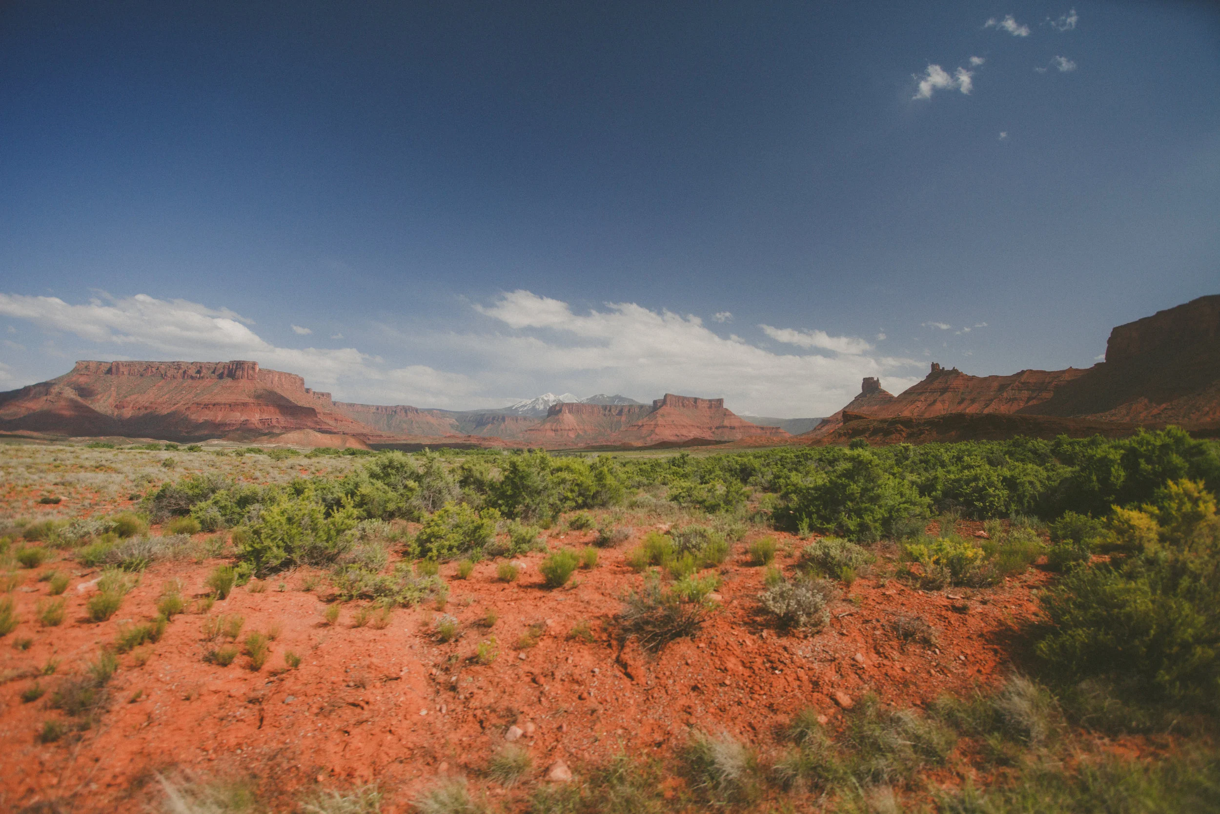 It was late when we finally made Moab. Stopped at a campground to empty our holding tank and fill our water. With groceries left to do, I was in a rush, so I peeled the foil seal from the top of the tank treatment, dumped in half the bottle, capped the thing, then hauled off to finish up, head to the store, and get back on the road. We followed Brandon and Leigh out of town, up the twisting spine of 128. Drove through the deep cut of the Colorado River, the stone walls rusted red and crumbing to the muddy water below.