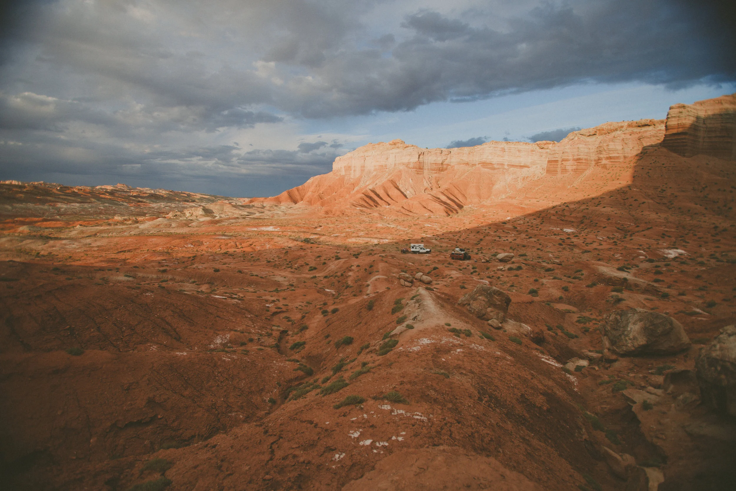 We were pushing towards six by the time we made camp between the folds of two massive, slickrock swells. This is uranium country, and the dirt beneath our feet fed our nation’s nuclear ambitions through the ‘60s. Two perfect holes in the sandstone behind the truck told the tale of core samples drilled long before I was born. Nothing here worth scarring the earth for, I guess.