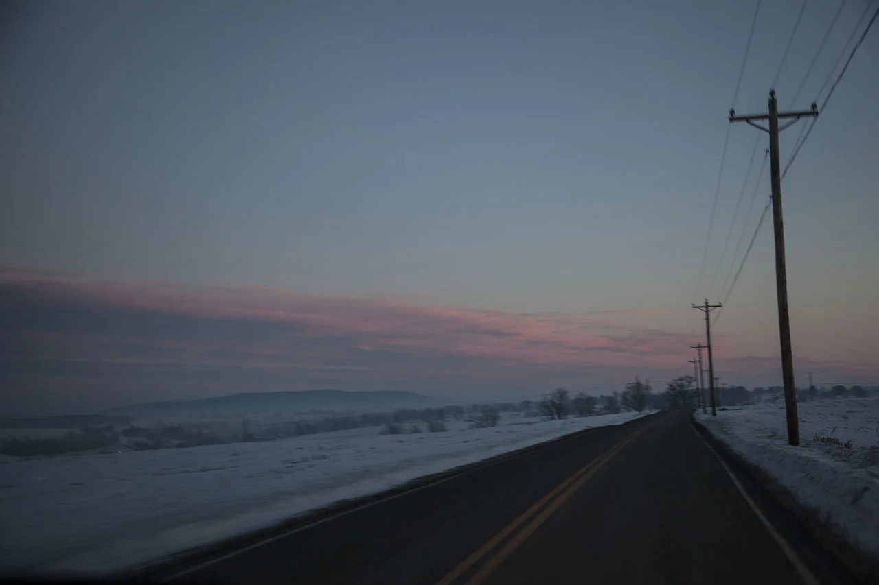 On the road again before dawn the next morning, the gorgeous pinks and reds of a winter sunrise pushed the stars away and caught on a low mist in the valley. Pennsylvania is beautiful the way all the old states are, peppered with small towns made of nothing more than a handful of buildings and a sign, all hemmed with gentle Appalachian ridges. It swells my heart to see them, so close to East Tennessee and so far at the same time.